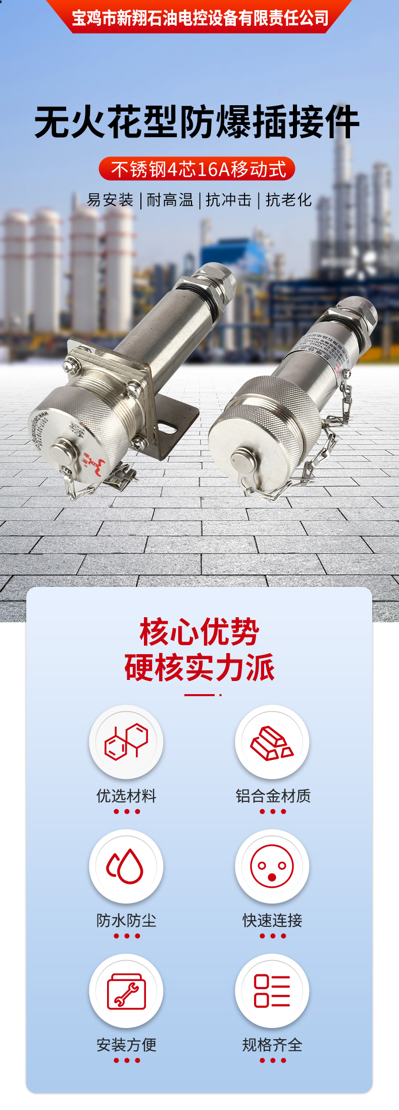 宝鸡市新翔石油电控设备有限责任公司主要从事防爆产品的研发和制造,适用于石油、矿井、国防、电力等领域。公司设备先进、技术力量雄厚,集科研、生产于一体,有相当规模和水平的制造体系,并且严把质量关,己通过ISO9001质量体系认证。