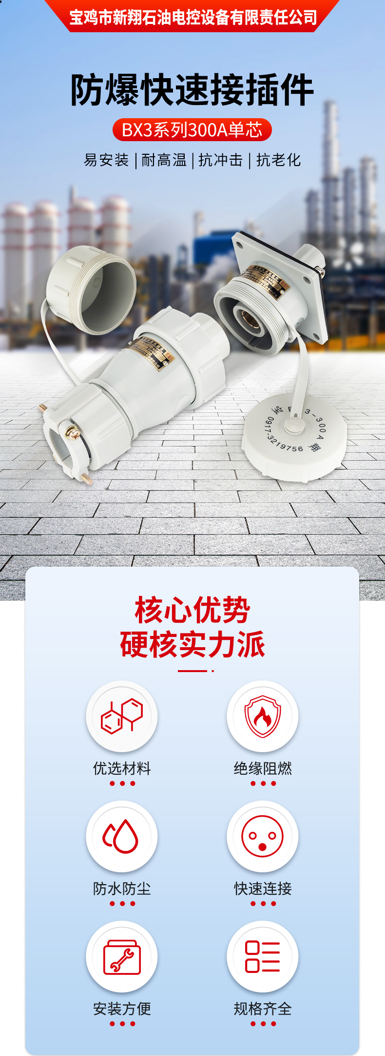 宝鸡市新翔石油电控设备有限责任公司主要从事防爆产品的研发和制造,适用于石油、矿井、国防、电力等领域。公司设备先进、技术力量雄厚,集科研、生产于一体,有相当规模和水平的制造体系,并且严把质量关,己通过ISO9001质量体系认证。