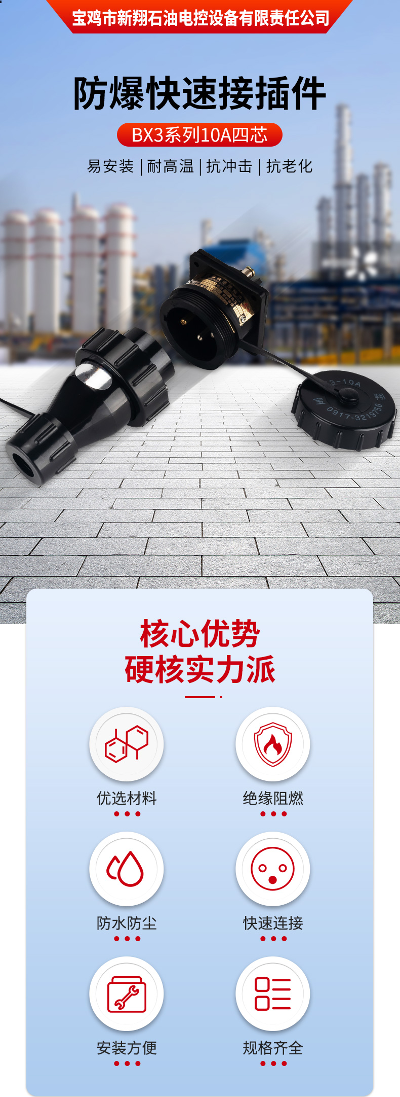 宝鸡市新翔石油电控设备有限责任公司主要从事防爆产品的研发和制造,适用于石油、矿井、国防、电力等领域。公司设备先进、技术力量雄厚,集科研、生产于一体,有相当规模和水平的制造体系,并且严把质量关,己通过ISO9001质量体系认证。