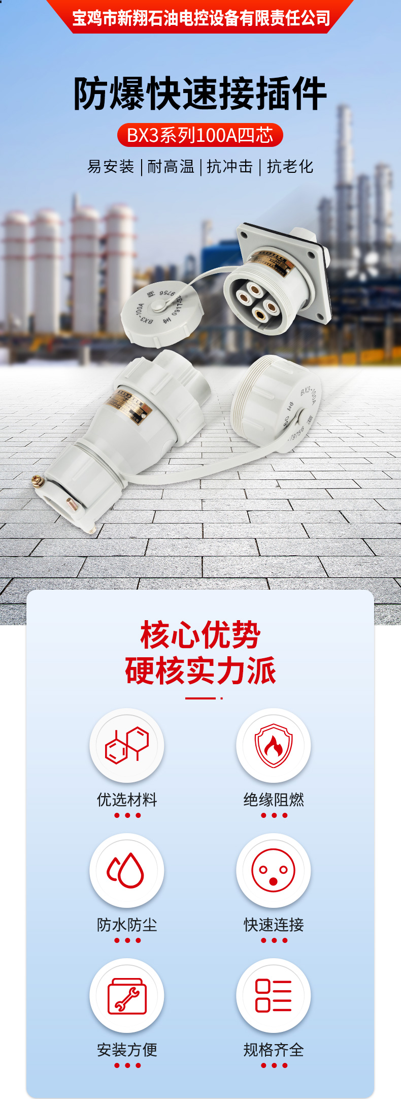 宝鸡市新翔石油电控设备有限责任公司主要从事防爆产品的研发和制造,适用于石油、矿井、国防、电力等领域。公司设备先进、技术力量雄厚,集科研、生产于一体,有相当规模和水平的制造体系,并且严把质量关,己通过ISO9001质量体系认证。