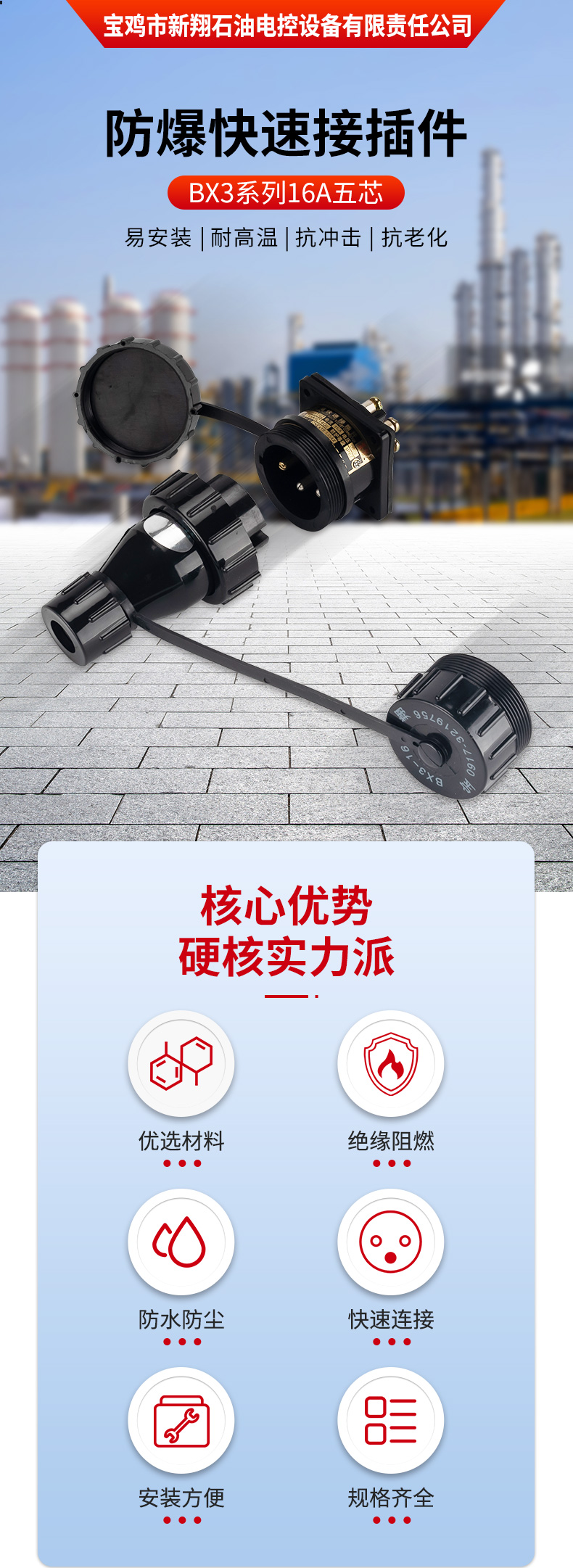 宝鸡市新翔石油电控设备有限责任公司主要从事防爆产品的研发和制造,适用于石油、矿井、国防、电力等领域。公司设备先进、技术力量雄厚,集科研、生产于一体,有相当规模和水平的制造体系,并且严把质量关,己通过ISO9001质量体系认证。