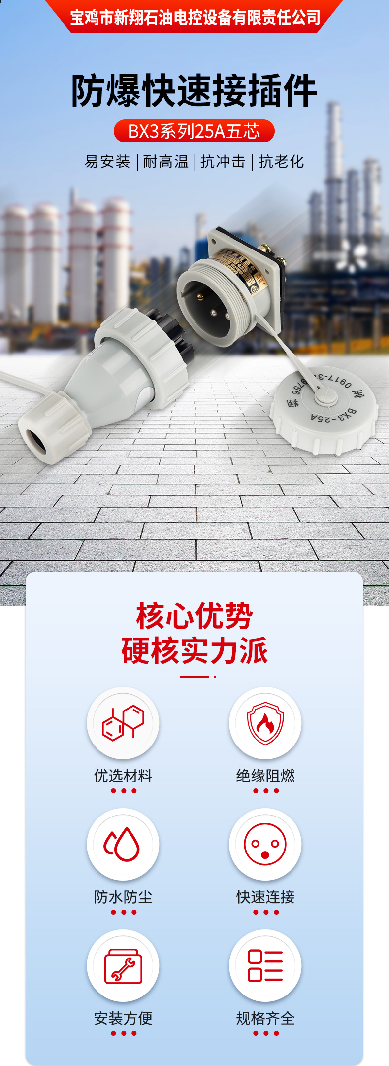宝鸡市新翔石油电控设备有限责任公司主要从事防爆产品的研发和制造,适用于石油、矿井、国防、电力等领域。公司设备先进、技术力量雄厚,集科研、生产于一体,有相当规模和水平的制造体系,并且严把质量关,己通过ISO9001质量体系认证。