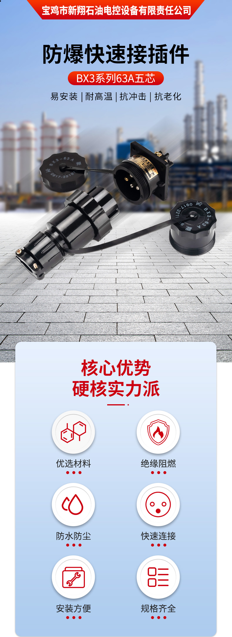 宝鸡市新翔石油电控设备有限责任公司主要从事防爆产品的研发和制造,适用于石油、矿井、国防、电力等领域。公司设备先进、技术力量雄厚,集科研、生产于一体,有相当规模和水平的制造体系,并且严把质量关,己通过ISO9001质量体系认证。