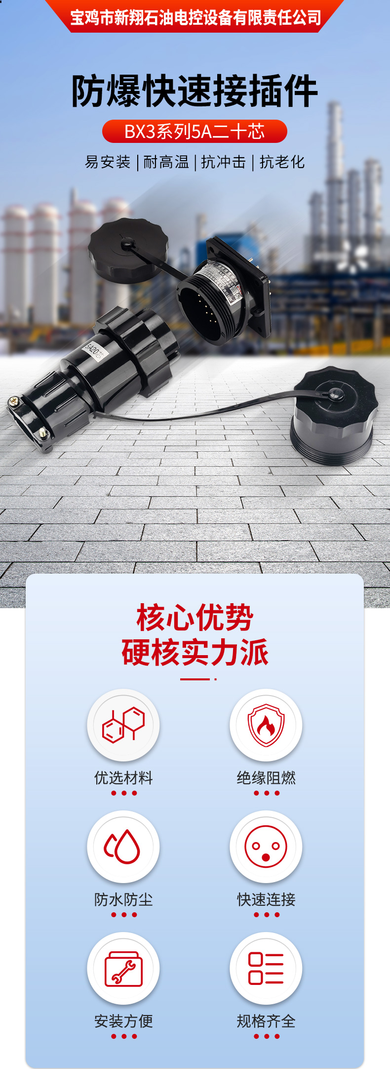 宝鸡市新翔石油电控设备有限责任公司主要从事防爆产品的研发和制造,适用于石油、矿井、国防、电力等领域。公司设备先进、技术力量雄厚,集科研、生产于一体,有相当规模和水平的制造体系,并且严把质量关,己通过ISO9001质量体系认证。