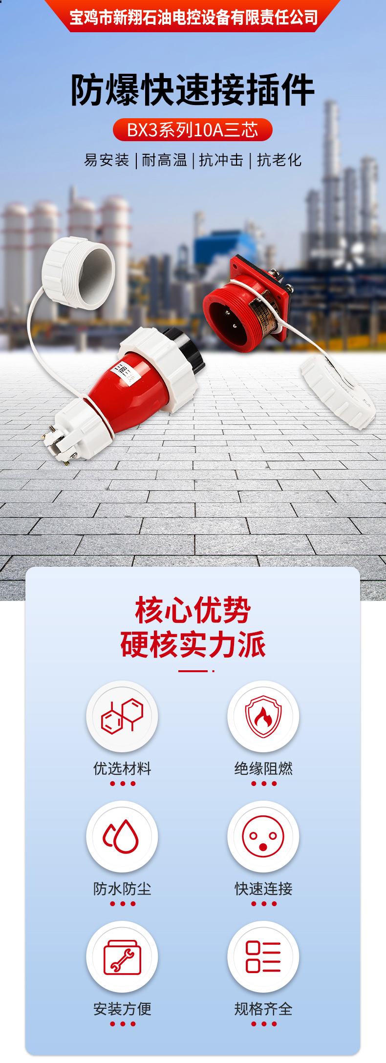 宝鸡市新翔石油电控设备有限责任公司主要从事防爆产品的研发和制造,适用于石油、矿井、国防、电力等领域。公司设备先进、技术力量雄厚,集科研、生产于一体,有相当规模和水平的制造体系,并且严把质量关,己通过ISO9001质量体系认证。