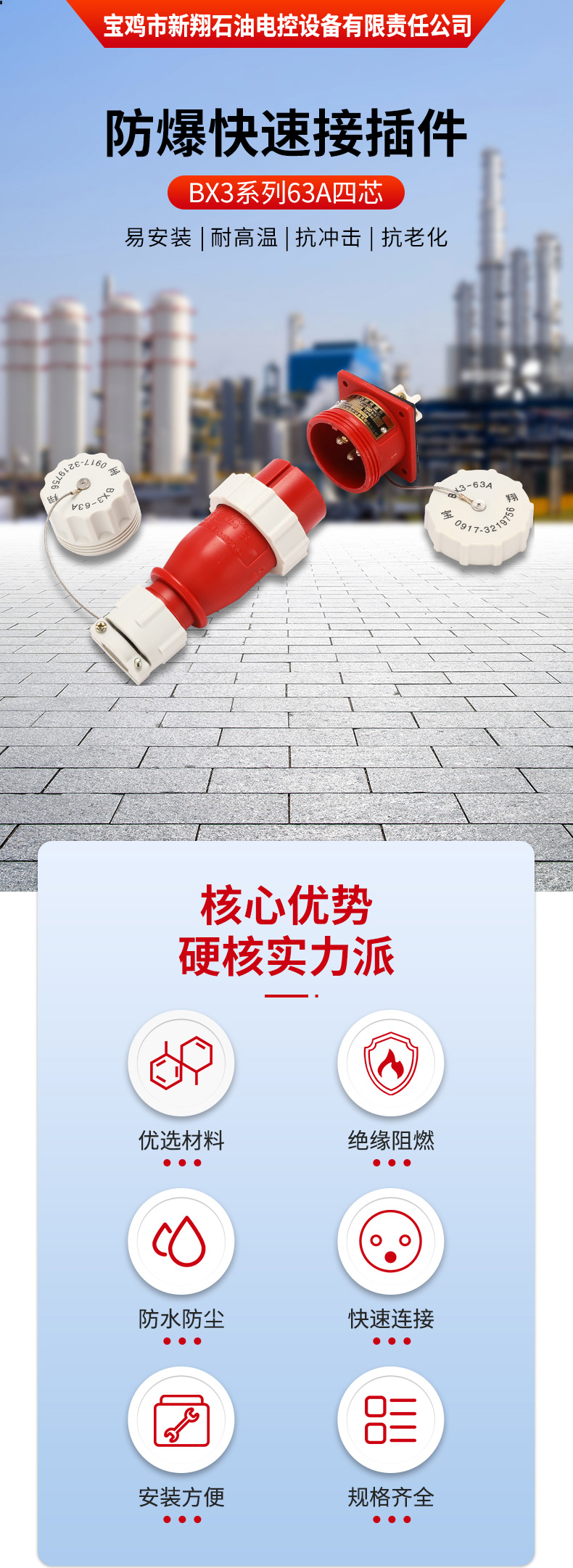 宝鸡市新翔石油电控设备有限责任公司主要从事防爆产品的研发和制造,适用于石油、矿井、国防、电力等领域。公司设备先进、技术力量雄厚,集科研、生产于一体,有相当规模和水平的制造体系,并且严把质量关,己通过ISO9001质量体系认证。