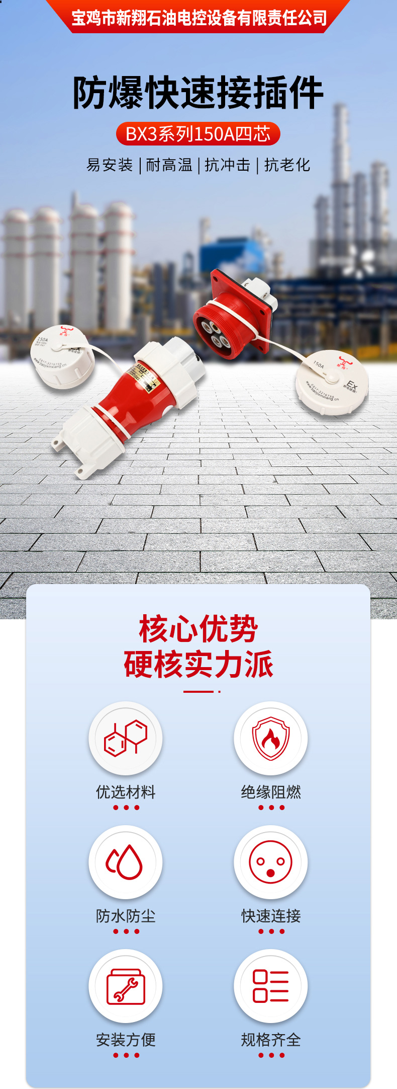 宝鸡市新翔石油电控设备有限责任公司主要从事防爆产品的研发和制造,适用于石油、矿井、国防、电力等领域。公司设备先进、技术力量雄厚,集科研、生产于一体,有相当规模和水平的制造体系,并且严把质量关,己通过ISO9001质量体系认证。