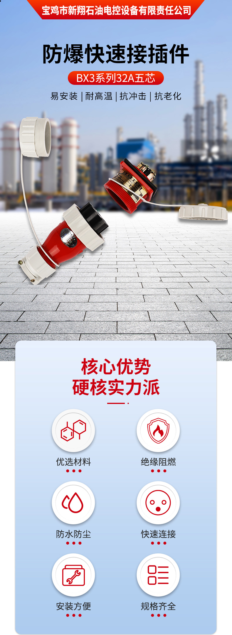 宝鸡市新翔石油电控设备有限责任公司主要从事防爆产品的研发和制造,适用于石油、矿井、国防、电力等领域。公司设备先进、技术力量雄厚,集科研、生产于一体,有相当规模和水平的制造体系,并且严把质量关,己通过ISO9001质量体系认证。