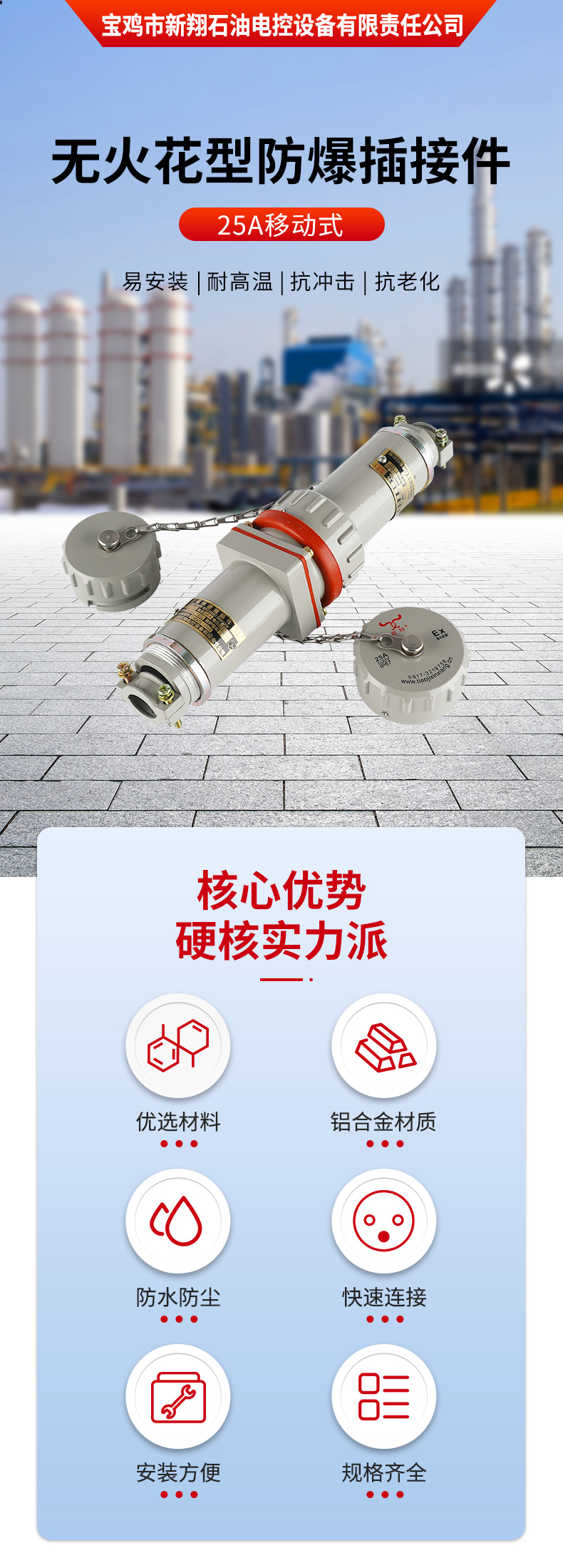 宝鸡市新翔石油电控设备有限责任公司主要从事防爆产品的研发和制造,适用于石油、矿井、国防、电力等领域。公司设备先进、技术力量雄厚,集科研、生产于一体,有相当规模和水平的制造体系,并且严把质量关,己通过ISO9001质量体系认证。