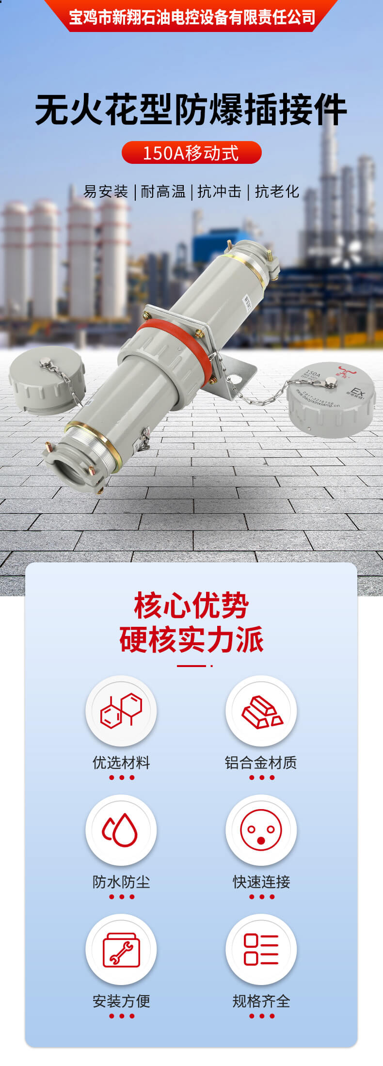 宝鸡市新翔石油电控设备有限责任公司主要从事防爆产品的研发和制造,适用于石油、矿井、国防、电力等领域。公司设备先进、技术力量雄厚,集科研、生产于一体,有相当规模和水平的制造体系,并且严把质量关,己通过ISO9001质量体系认证。